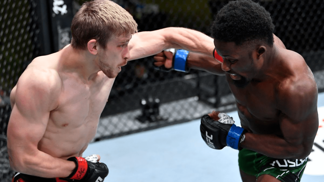 None of the above. The answer is actually 27-year-old Englishman Arnold Allen, who has emerged over the last several years as one of the top prospects in the UFC’s deepest division. Allen reached the top 10 of the 145-pound rankings last year after a fantastically impressive run to start his UFC career – including a very sharp performance in a win over former superstar Gilbert Melendez – and on Saturday, he ran that win streak to eight with a unanimous decision win over another highly regarded young talent, Sodiq Yusuff.