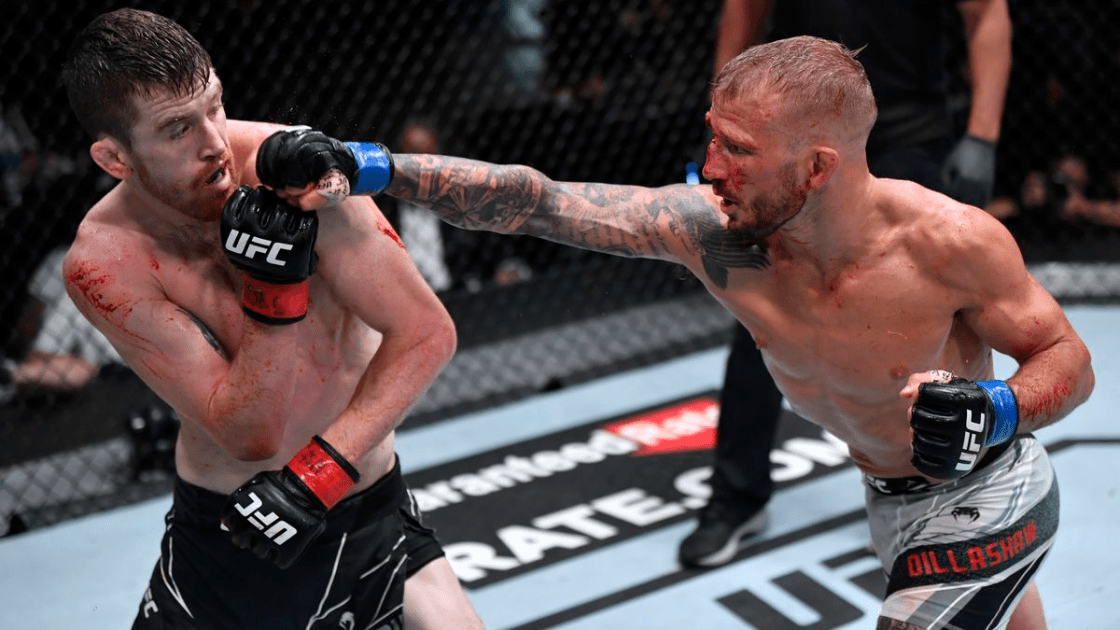 And Dillashaw may not have looked like he’s the best in the world anymore, but he’s silenced a lot of doubts about where he fits in among the bantamweight best. Sandhagen is unanimously considered one of the top 135-pounders in the world, and Dillashaw battled with him tooth-and-nail, looking like he belonged in there with Sandhagen after two and a half years away. He even found a way to get his hand raised, controversial or not.